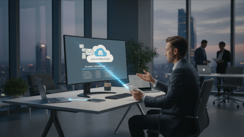 まず「カスタマーマッチ」とは、Google広告をはじめとする広告プラットフォームが提供する機能で、広告主が保有する顧客情報(メールアドレス、電話番号、住所など)をプラットフォームにアップロードし、既存顧客や類似ユーザーに対して広告配信を行う手法です。
